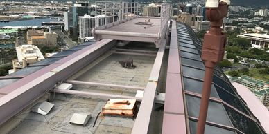 The GM of this AOAO reported that the rooftop AC equipment tower was leaking through the roof slab into the penthouse units below. Aiello responded immediately - on an emergency basis - to ascertain the source of the leaks. His prompt inspection revealed that failures in the roof membrane and scupper system throughout the entire roof were the causes of the leaks, not the AC equipment.