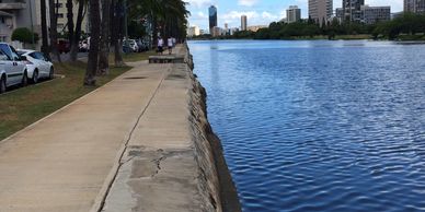 Built in 1928, this 2-mile long man made waterway has had a problematic history for the City and State since its inception. At present, deteriorating conditions in the basalt rock revetment structure and foundation failures have caused severe degradation of the concrete promenade running its length. Additional attention has been brought regarding life safety issues and known ADA violations. With a fall distance greater than 30-inches to the water, ADG proposed a handicap friendly guardrail system for the full length of the Ala Wai Canal.